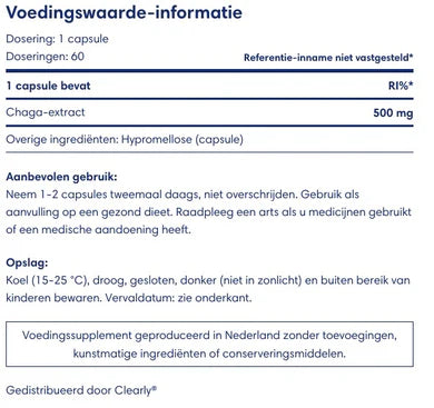 Chaga staat bekend om zijn rijke antioxidanten en ondersteunende rol in het immuunsysteem. Deze paddenstoel groeit voornamelijk op berkenbomen in koude klimaten, waar het de voedingsstoffen van de boom absorbeert.