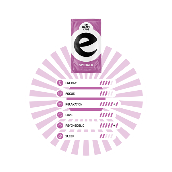 Een krachtige mix van ingrediënten die unieke, vreugdevolle gevoelens en sensaties opwekt. Je ervaart een levendige energie, vergelijkbaar met het effect van een paar kopjes koffie, maar dan zonder de rillingen en in plaats daarvan een warm gevoel van geluk. Het is een sensatie die je wilt delen; het maakt je socialer in gezelschap, met een lossere tong.